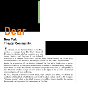 In addition to sharing some throwbacks to a time when I was making theater in a room with wonderful people, I am sharing a community statement that artists from the downtown NYC institution known as The Flea published this week demanding restitution for years of inequity and abuse. I stand in solidarity with these artists. Let’s take care of ourselves so that we can do the good work that needs to be done. That’s my goal this week.