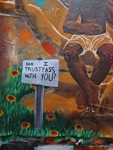 Noticing many no trespassing signs on natural lands is less than desirable at times. Art in this way gives me the chance to rewrite history. “Can I trustpass with you?” Is asking permission from the land or person to share space or aspects about oneself in a safe environment.