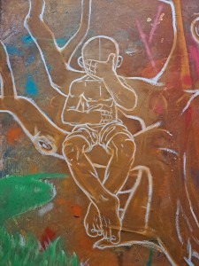 Sean is one of few natives I often see on my brief excursions. He’s either resting peacefully or working out as if the gods themselves could not rival his strength. On this particular day I was on my way back to my art studio when I noticed him sitting very still on the side of the trail. He had his left hand placed over his face with his right over his stomach. A feeling I’ve encountered more often than not. No words were spoken for he sat so motionless I assumed he was in deep meditation. I pressed on to the studio with the his image carved into my mind. Knowing that if I brought if from concept to finished piece I’d have the perfect words and resources to return and give back to the source of my inspiration.