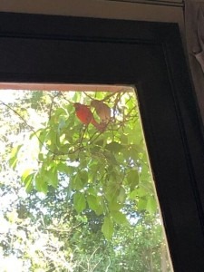And The Cardinals: A pair of cardinals that flew around my garden last spring looking for a place to build a nest. After a few days of watching their attempts, I made them a “bird nest” basket and attached to vines underneath the eaves of the house with sandwich ties. The birds moved in and raised two hatchlings.