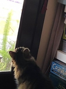 We (and Squeaky) watched the cardinals flying around these vines. And then we noticed bits of sticks and twigs on the ground.