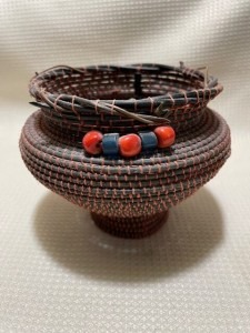 I’ve been weaving baskets on and off for at least 30 years! My first class was at the University of South Florida Craft Studios in the Student Union in the late ’80s or early ’90s. My instructor brought supplies and taught one style of basket: Appalachian style egg or potato baskets in natural round reed with grapevine handles and god’s eyes.