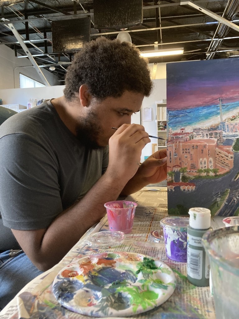 Ashton T., who graduated from the Transition Program two years ago, just had a piece accepted into Chad Mize’s Fun Set, a show about St. Pete at Green Bench Brewing, which celebrates its 10th anniversary this month.