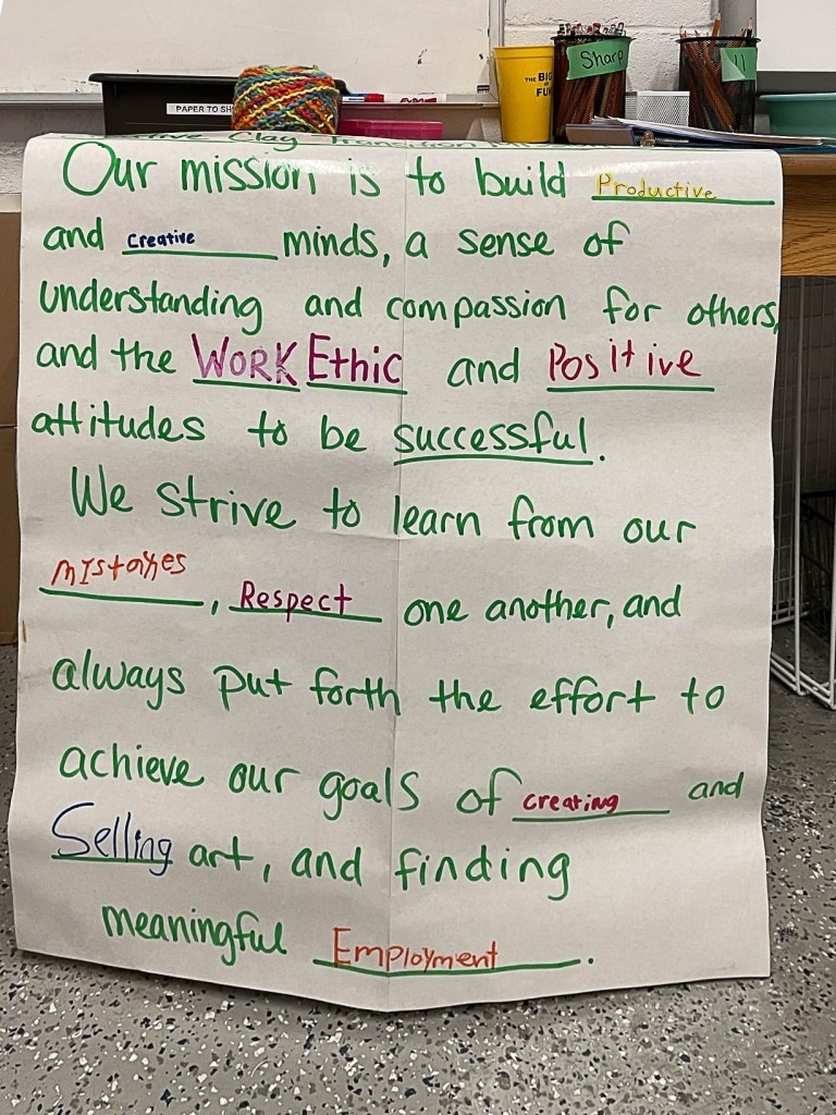 “We strive to learn from our mistakes, respect one another, and always put forth the effort to achieve our goals of creating and selling art and finding meaningful employment.”