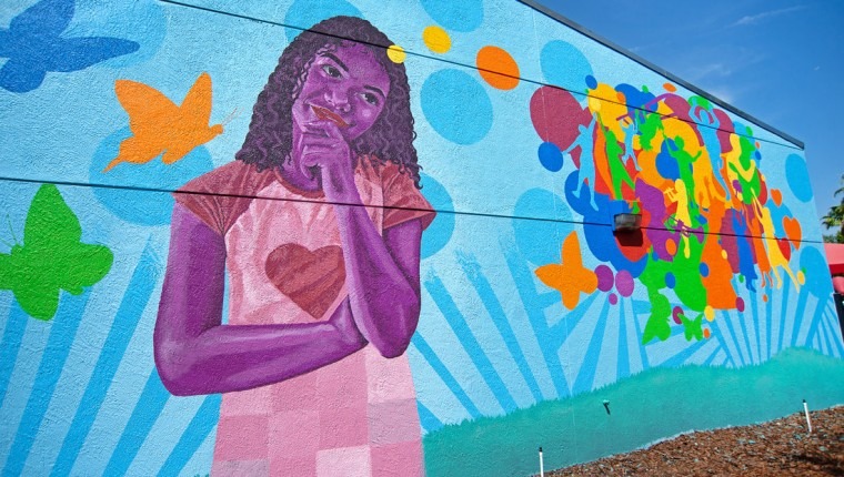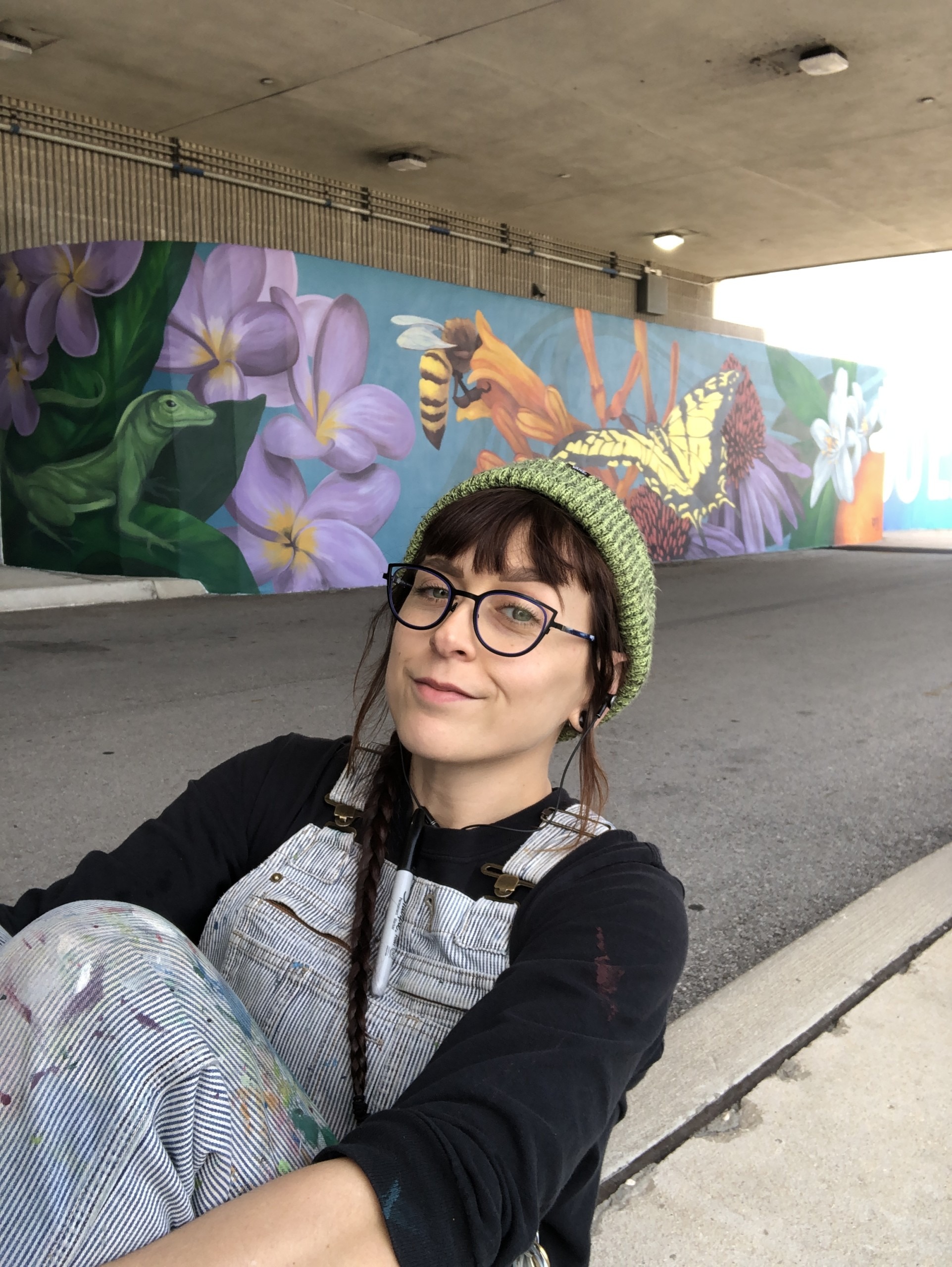 Miss Crit with her mural at St Pete-Clearwater International Airport