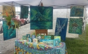 I painted endlessly, putting in so many late nights, to get a good stock of paintings prepared. I had to figure out price tags, and packaging. I didn’t own any sort of tent or tables for display. There’s so much mundane paraphernalia involved in putting on an event. Unless you’ve done it you can hardly imagine what you need to make the magic of an enjoyable, successful, experience. How are you going to get your supplies from the car to your space? What will you do if it rains?  Do you have surplus cash for making change?
