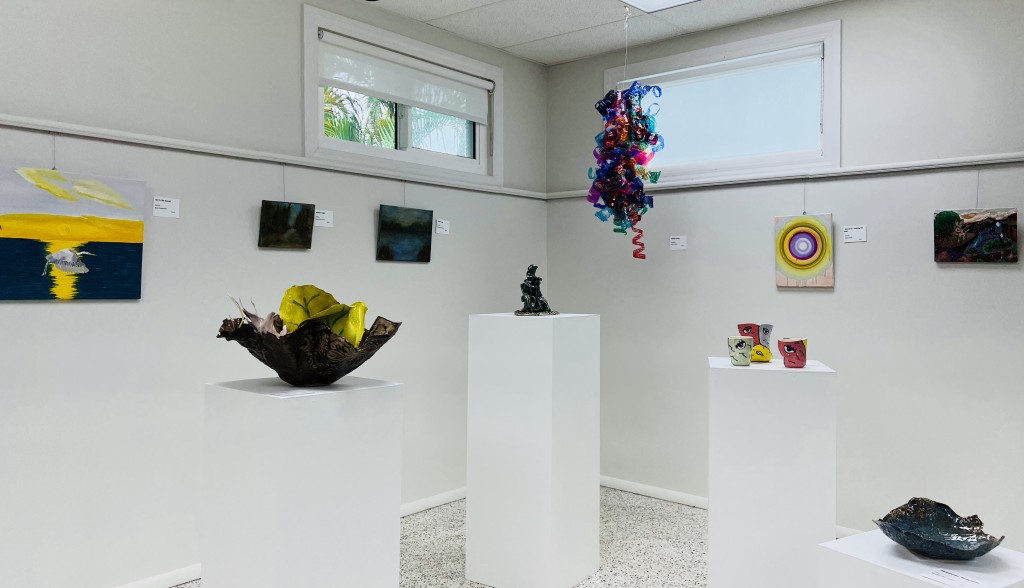 , on display through October 28, features well-versed artists and new artists in varied mediums. Sculptural, pottery and clay works are displayed on pedestals. The gallery shows provide a great opportunity, empowering artists to show and sell their works.