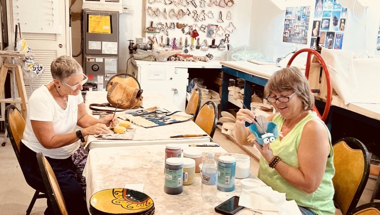 Potters Jane Wrobel and Debbie Nelson crafting clay works – photo by Suzanne Norman