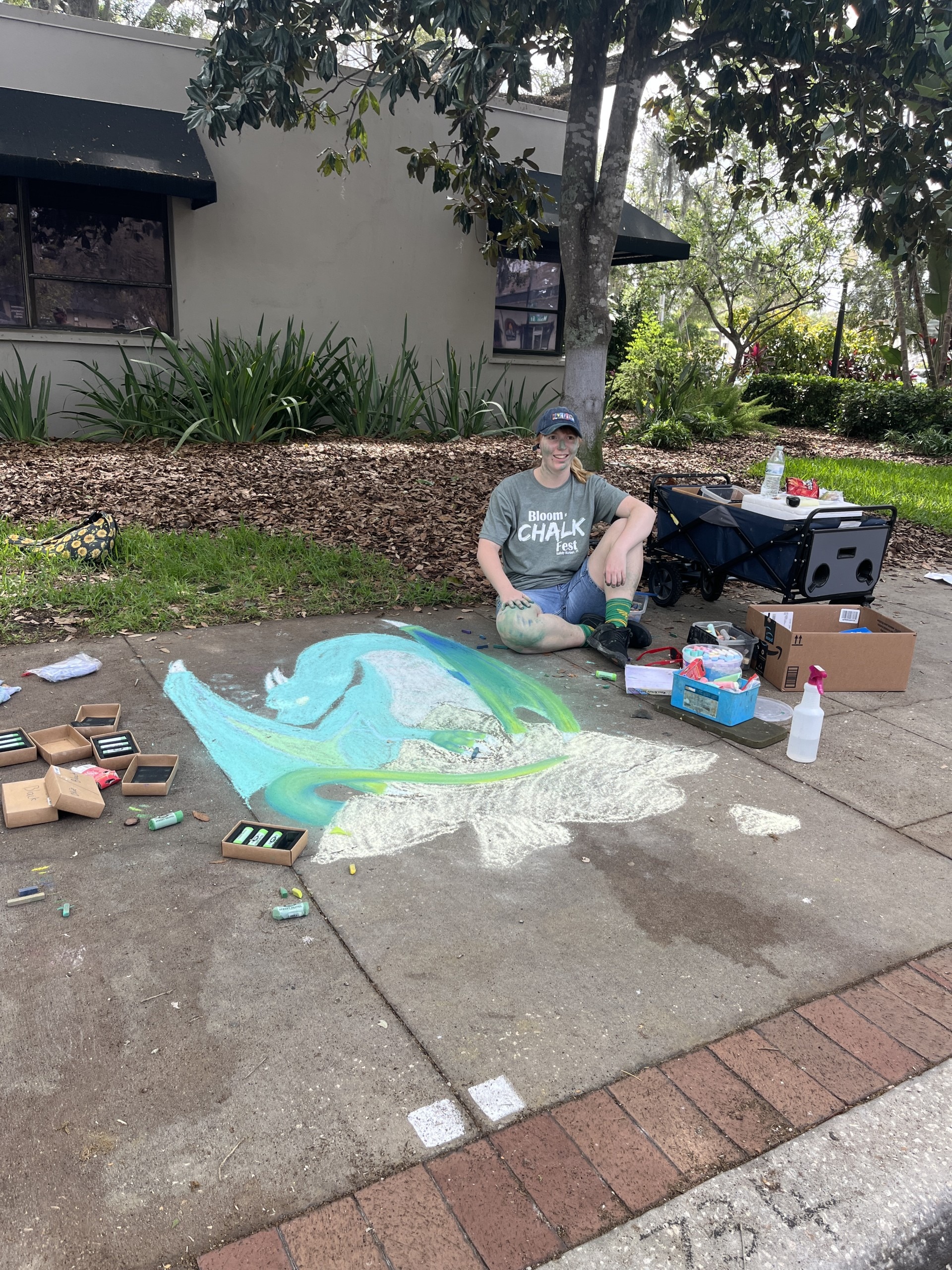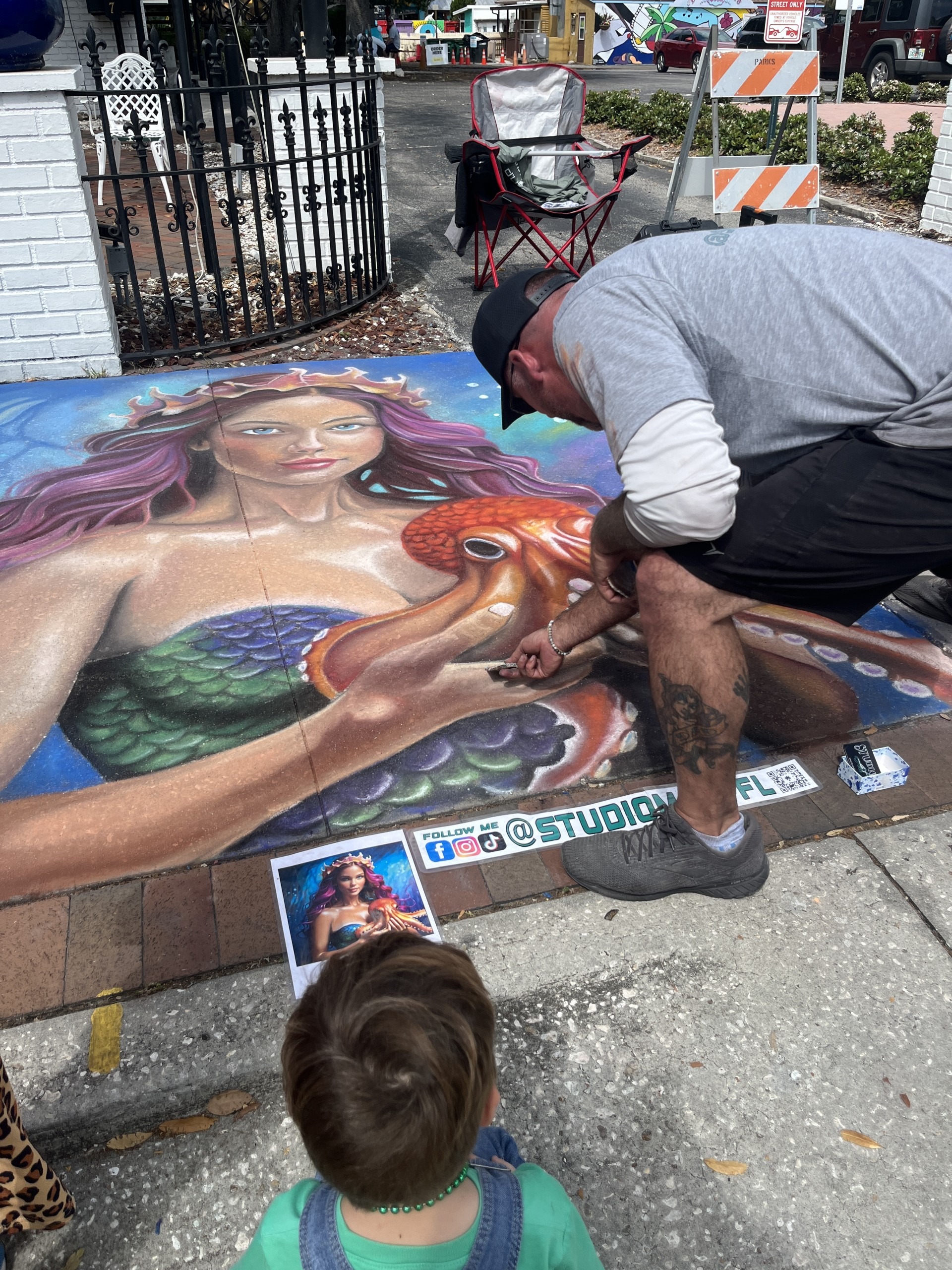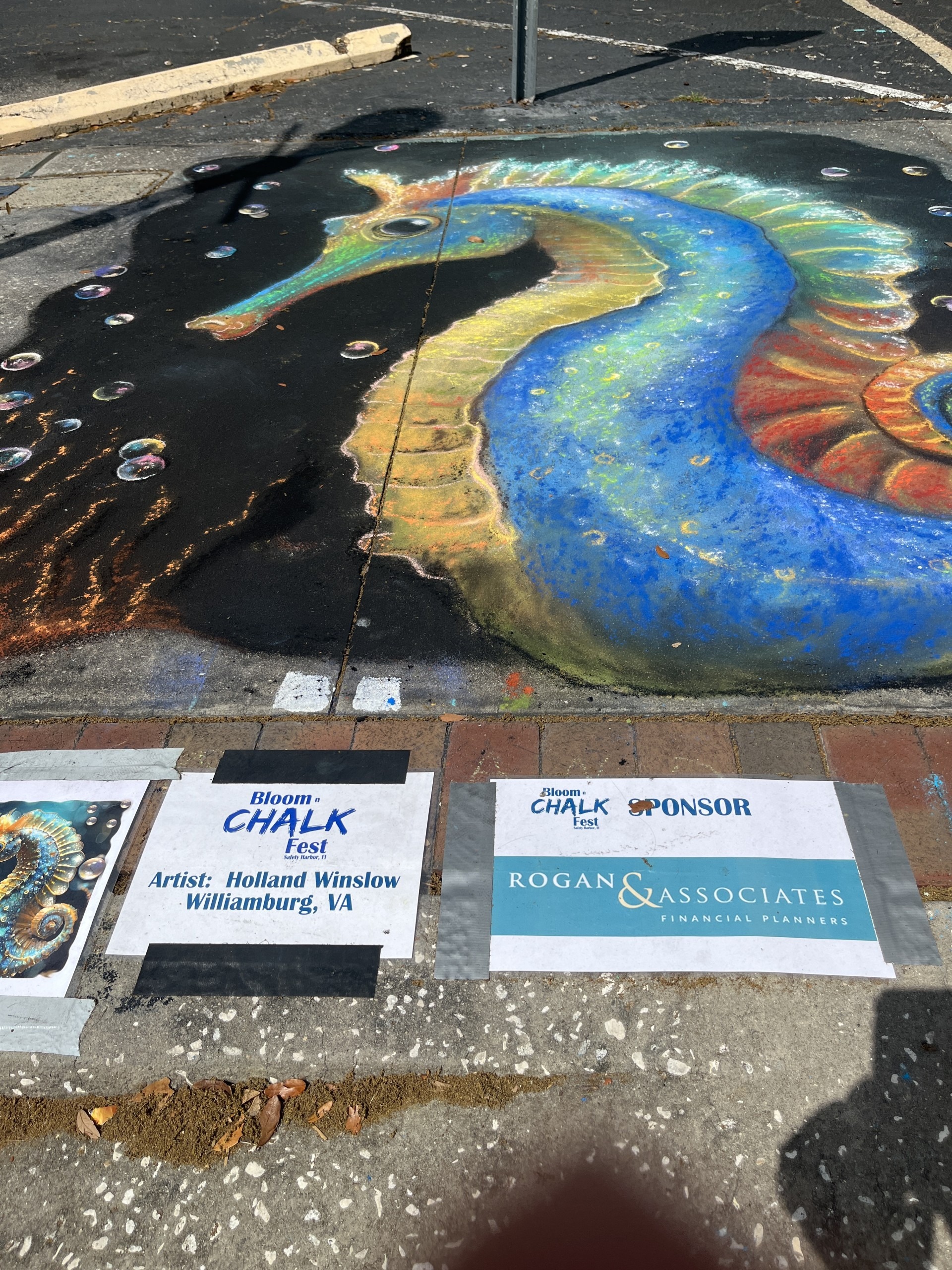 Thomas really wanted to jump into some of the chalk art, and so I asked him to take photographs of the seahorse by Holland Winslow from Williamsburg VA and of the portrait by Susan Kelly from West Palm Beach FL.