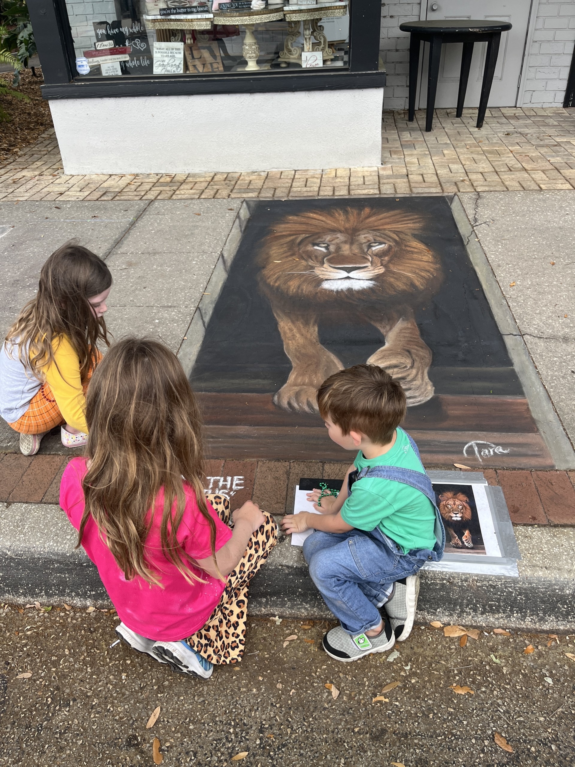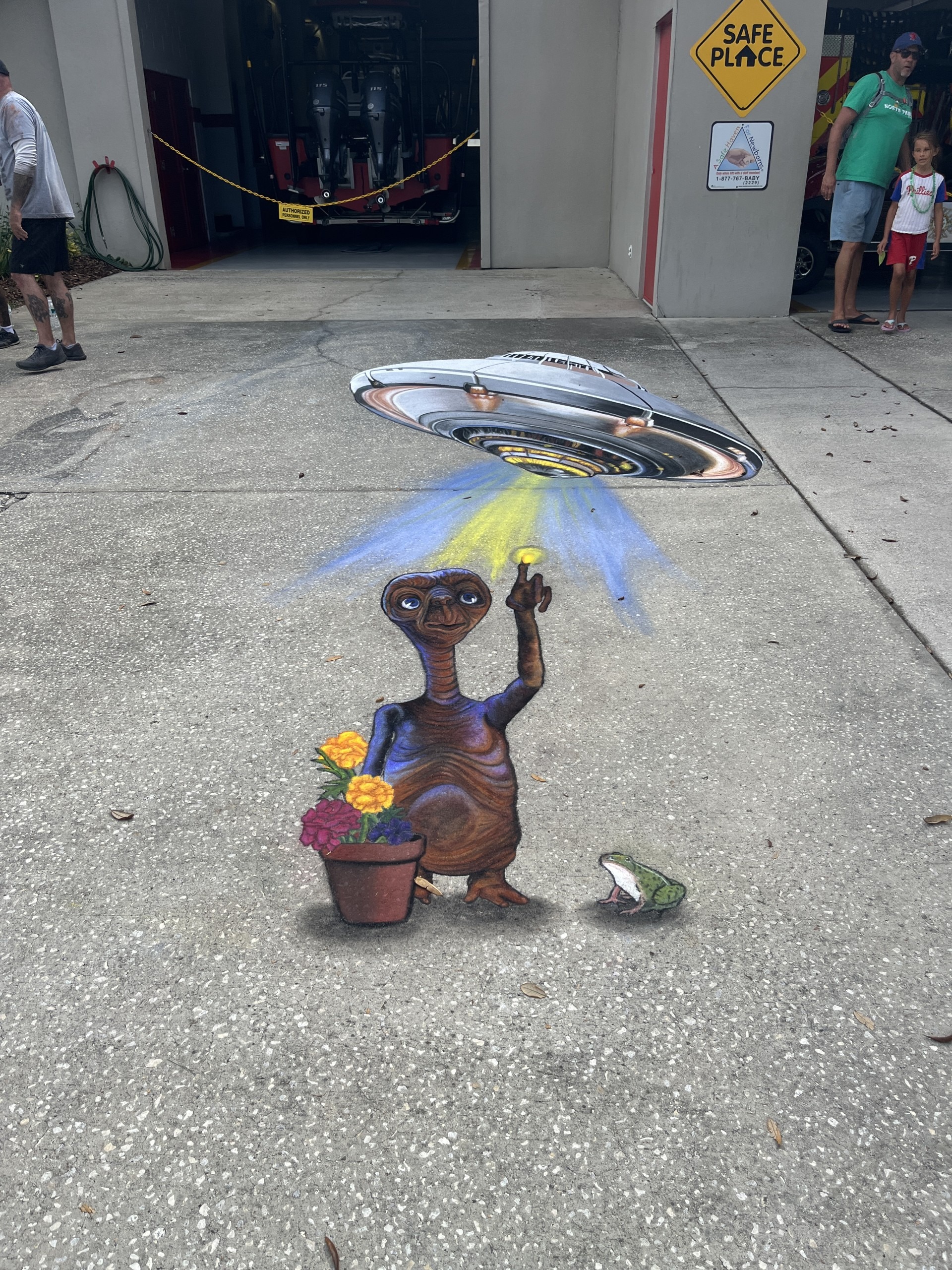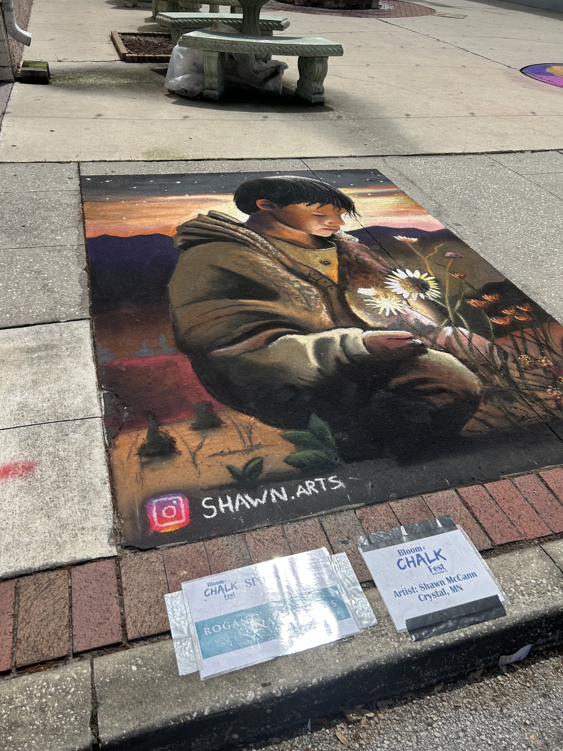 Thomas really wanted to jump into some of the chalk art, and so I asked him to take photographs of the seahorse by Holland Winslow from Williamsburg VA and of the portrait by Susan Kelly from West Palm Beach FL.