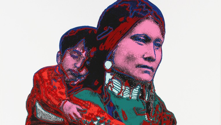 Andy Warhol, Cowboys and Indians: Mother and Child, 1986 Screenprint on Lenox, museum board Edition 55/250 36 × 36 inches, Collection Booth Western Art Museum, © 2019 The Andy Warhol Foundation for the Visual Arts, Inc. / Licensed by Artists Rights Society (ARS), New York