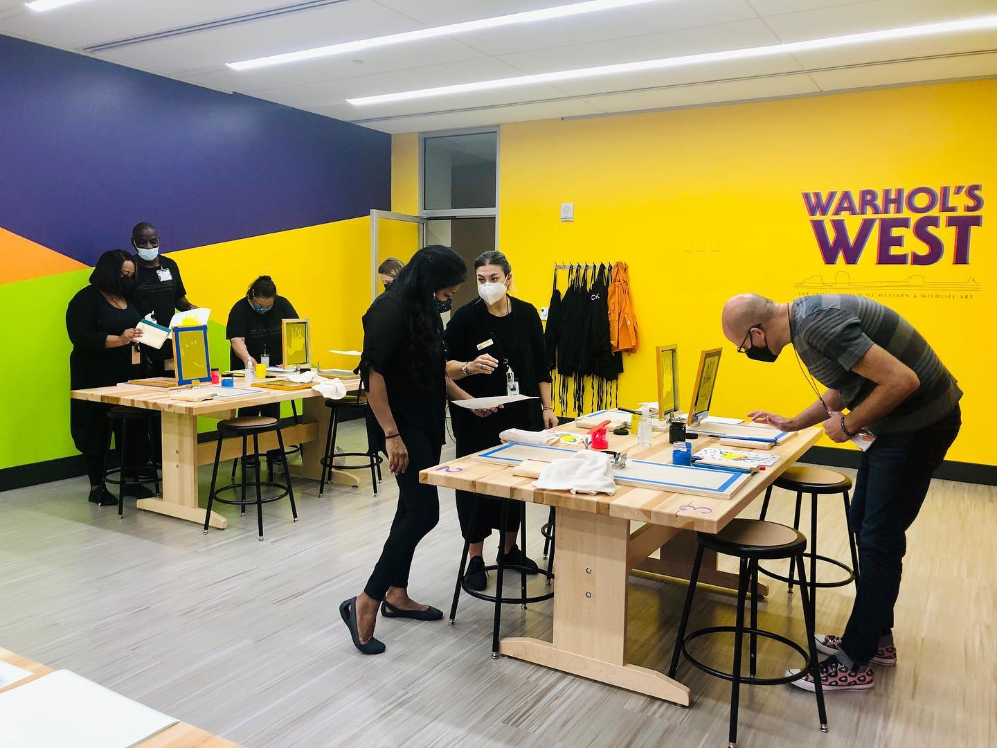 James Museum staff trying out the Screen Printing Art Experience that’s open to visitors on select days throughout the run of Warhol’s West. The experience is included with admission, but you do need to reserve tickets due to limited capacity