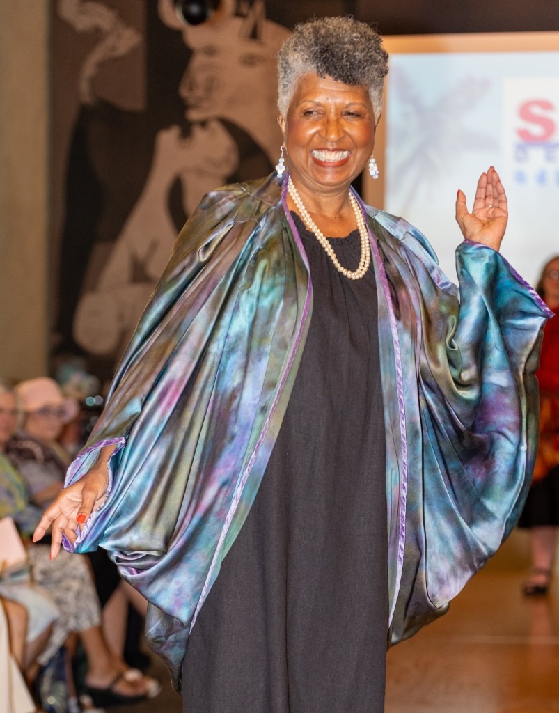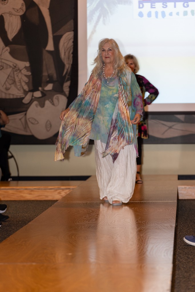 Stories about Marlene Glickman, who passed away in 2023, praise her enormous talent, national and international acclaim, and her generosity in sharing her artistry, knowledge and fabric art techniques with budding artists. Those stories were interwoven into the fabric and purpose of this fashion show.
