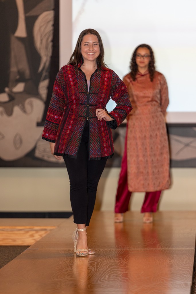 “Our Curator Sara Felice was the emcee-narrator. As each look came down the runway, she explained the techniques and materials used and how the upcycled effects were achieved.”