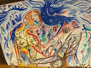 painting by Ana Maria Vasquez, her interpretation of actors, dancers and musicians performing Sheila Cowley’s Madness