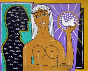 Lyrics of songs find their way into my paintings becoming part of them written into the painting or snippets become the titles of paintings. More so dreams motivate me to paint them or to paint to release from the reality of that dream but I wouldn’t consider dreams an art form or would you?