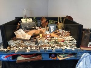 The Dig – Helen wrote a piece based on our conversation regarding the weight of sorting another person’s life……I created the installation in this photo, for the Fantastic Ekphrastic Show.