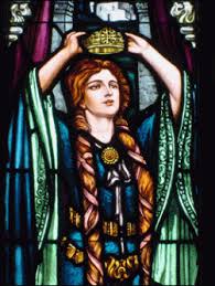 This first image is Lady Macbeth Crowning Herself, stained glass by Albert Gerlach, created for the Elsinore Theater in Portland, Oregon in the 20th century.