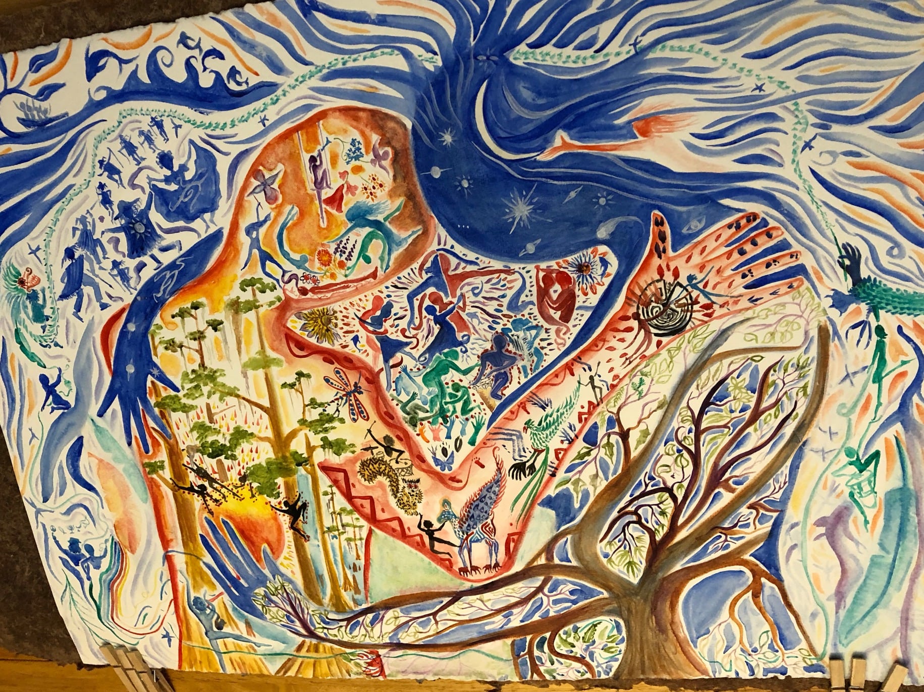 painting by Ana Maria Vasquez, her interpretation of actors, dancers and musicians performing Sheila Cowley’s Madness