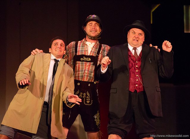 First, they find the worst imaginable play to accomplish their scam: the duo digs up a script that pays homage to, of all things, the Third Reich. Its pigeon-keeping Nazi playwright, Franz Liebkind (a feisty Jim Sorensen), submitted a long-buried script titled Springtime for Hitler. Then Max goes after the worst director he knows — a strutting peacock of stereotypical swish — Roger De Bris (a scene-stealing Scott Daniel) emerges in a ballgown and headdress that makes him look like the Chrysler Building. Roger’s entourage — including Emmanuel Carrero as Kute Kevin; Charles Logan, a flamboyant choreographer who exits the stage with a pliée and Alex Ringler, who’s simply perfect as snooty assistant Carmen Ghia–get some of the show’s biggest laughs.