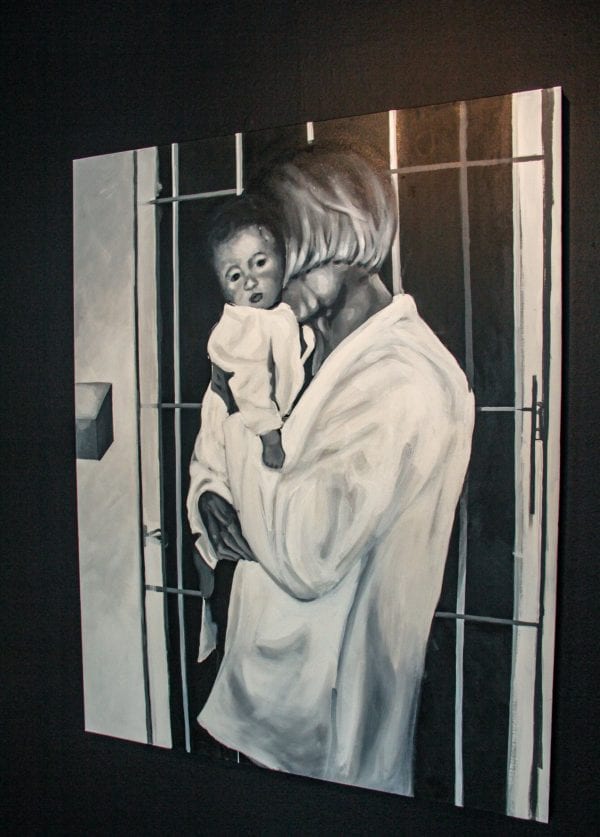Wagher shares the stories behind the works. One features a loving portrait of a woman nuzzling a baby.