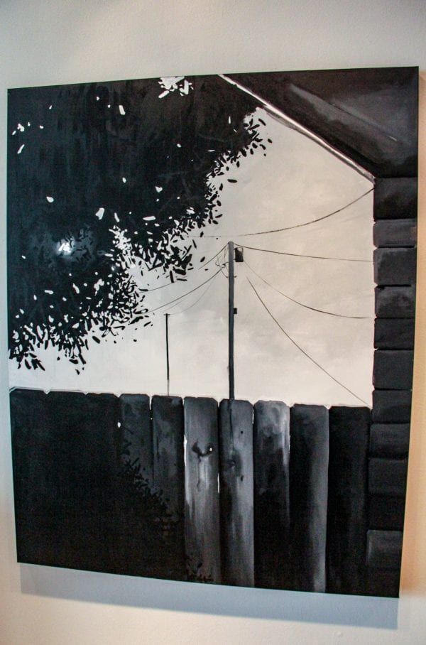 The stirring (mostly) black-and-white works by the 20-year-old Pinellas County Center for the Arts grad put into context what Wagher connects to his St. Pete stomping grounds. He cautions that it’s not necessarily a whole interpretation of a house, event or geographic location but imagery associated with the places and sights of his past.