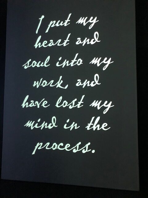 I feel just the words on the walls would have been more expressive of Van Gogh as a thinking and emotional artist. But, what do I know? I found his written words, probably sent in letters to his brother Theo, more moving and profound than the large paintings and portraits.