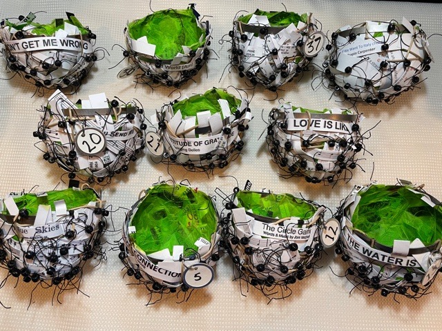 But these 11 Songs of Comfort baskets and the other 30 are completed and I’m excited. They are not all happy songs. Which did I choose?