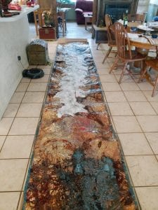 I would like to share the process of “The Towers #1”.  I am working on our Creative Pinellas Emerging Artists 2019 project.  I started the folding and chemistry treatment of “The Towers @1”.  “The Towers” will be a series of 3 large profile pieces expanding 10 feet by 3 feet in what I called fumed copper.  The piece of copper will be folded to create focal points, then put into an air tight tank.  Chemistry solutions will be added and the tank will be sealed.  Lets see what Mother Nature decides to grant us with.  Keep following, this will be interesting!
