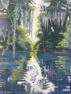 This is based on plein air sketches of Brooker Creek and the gator is added from imagination.