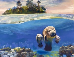 “Prayer for the Manatees” was a painting I did based on the turtle photo but is more transformative.