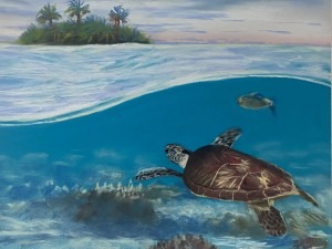 “Prayer for the Manatees” was a painting I did based on the turtle photo but is more transformative.