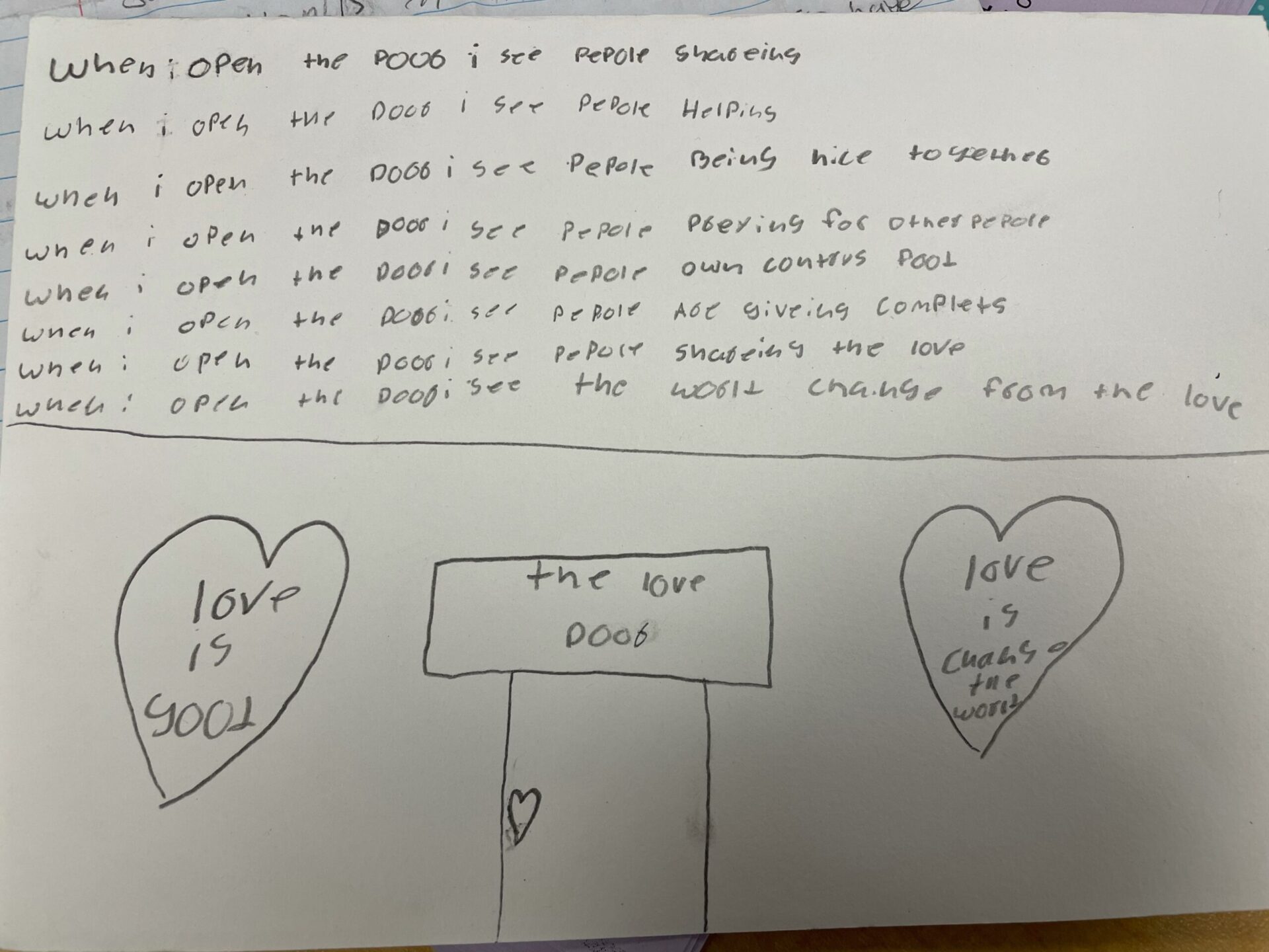 And here is a lovely heartwarming poem by an elementary student named Enrrique from High Point Elementary. This poem was from last Wednesday’s class:
