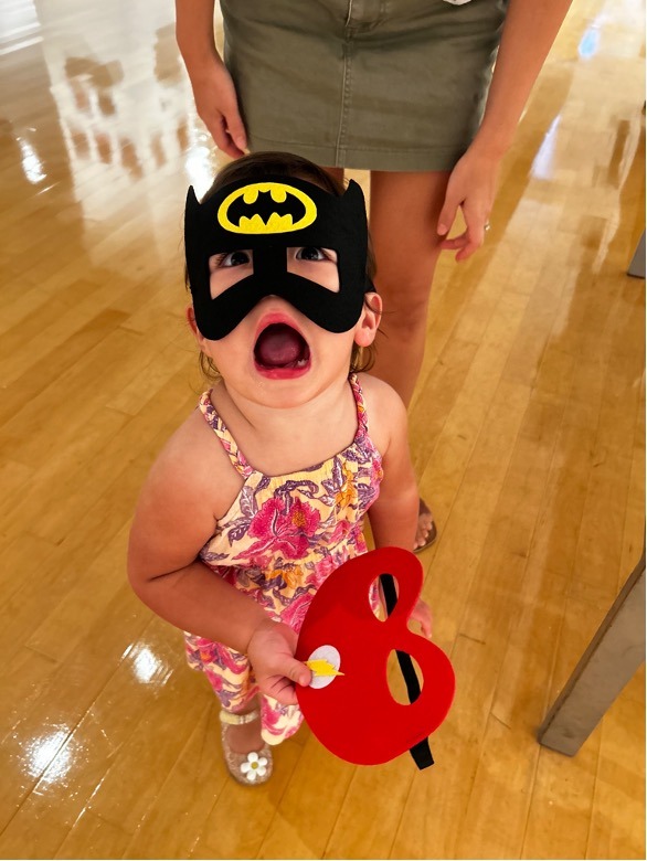However, my daughter’s favorite part of the exhibit was the ending where she could sit in my wife’s lap and draw using the tracing station. My daughter also loved the mini-masks that she could try on including Batman and Captain America and she thoroughly enjoyed seeing the colorful art.