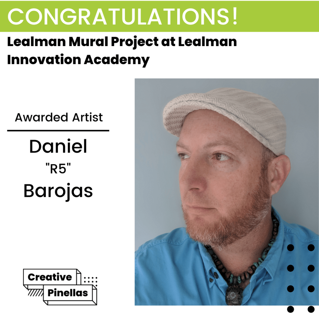 Each application submitted between September 15th – October 21st at 11:59 pm will be reviewed by a panel to include a Creative Pinellas Representative, representatives from the Lealman area and, Lealman Innovation Academy (LAI), a Pinellas County based Mural Artist, and an Art Curator. Artists will be notified no later than October 27th. If you are not selected, you will also be notified at that time.